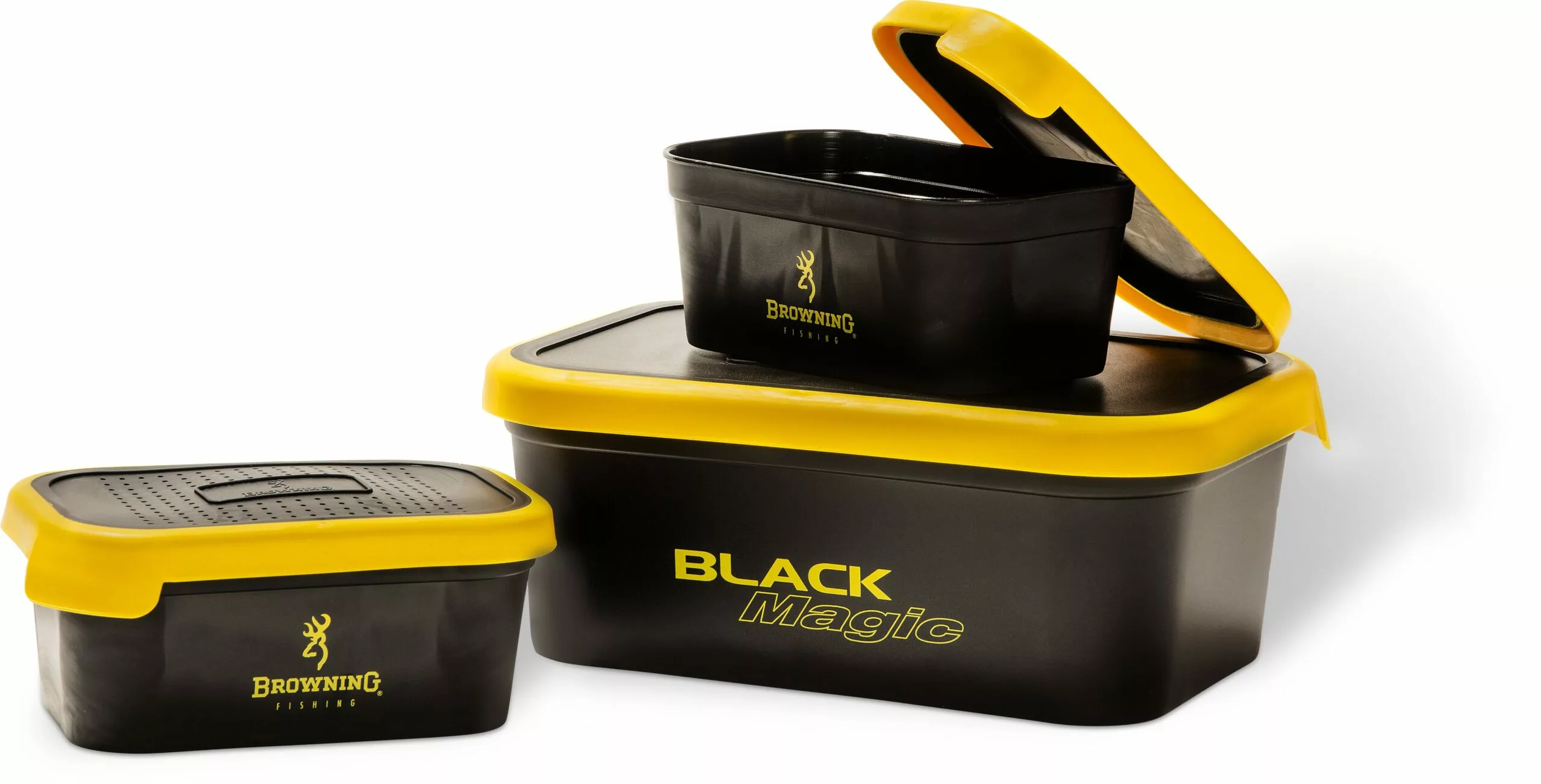 Moderne aasdoos in een handig formaat. Beschikbaar met meerdere types deksel, bijvoorbeeld hermetisch afgesloten voor vochtige pellets of geperforeerd voor levende aassoorten zoals maden of wormen.