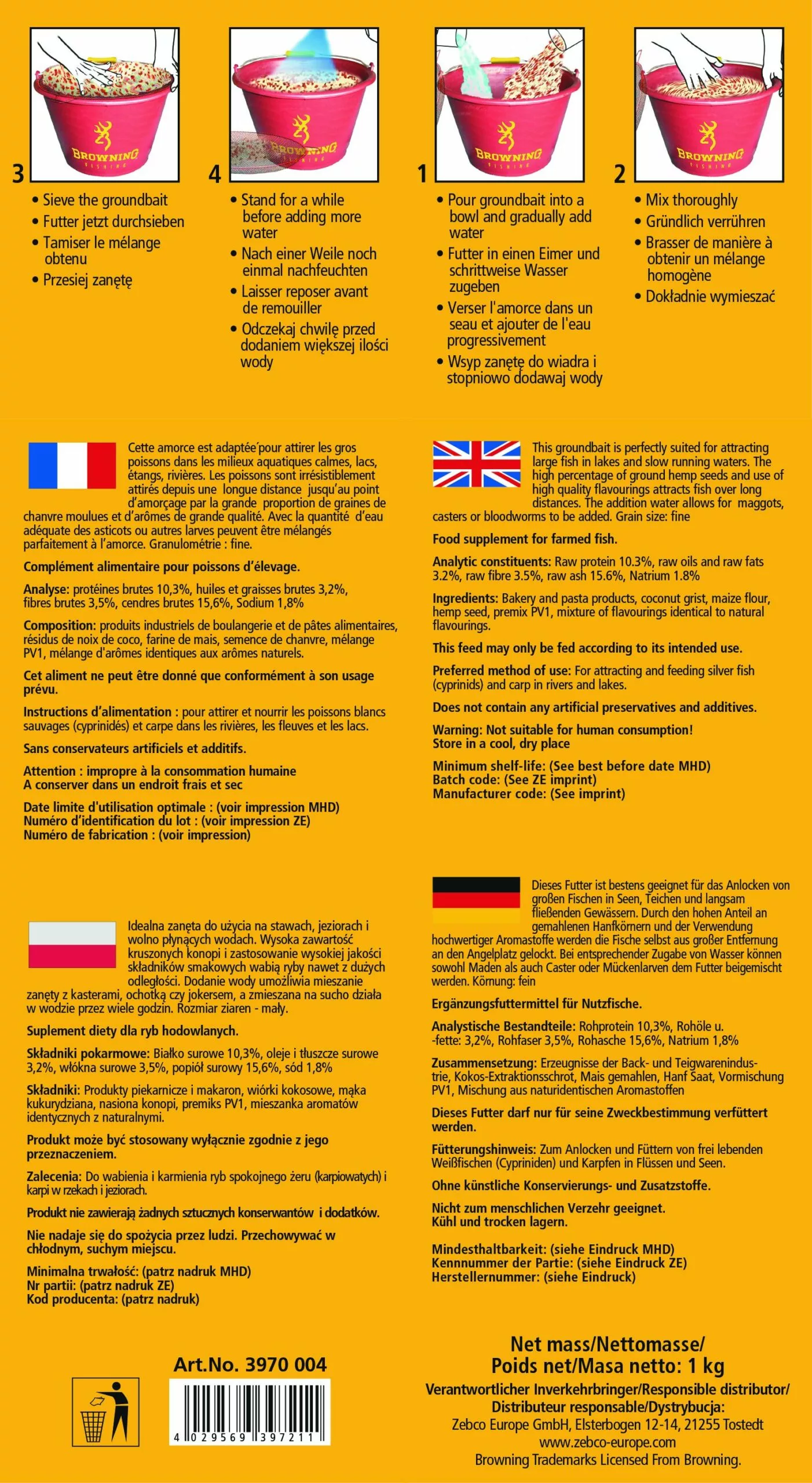 Zoals de naam al suggereert, is dit grondvoer ideaal voor vijvers, meren en traag stromende rivieren. Het voer is erg actief wanneer het in het water ligt en er zit veel gemalen hennep in, waardoor de vissen vanop grote afstand naar de voerstek worden gelokt. De menging van lokstoffen is onweerstaanbaar voor grote brasems en voorns. Stillwater is perfect in combinatie met muggenlarven. Als u het met niet te veel vocht aanmaakt, blijft het zijn werking urenlang behouden onder water. Korrelgrootte: klein.