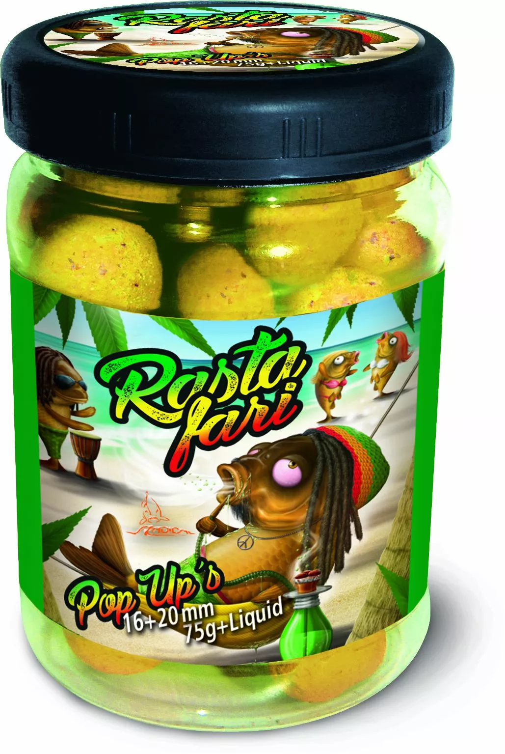 Stevige pop-up boilie die lang blijft drijven, perfect om in combinatie met de Rastafari-boilie te gebruiken. In elke verpakking zitten twee verschillende diameters, zodat u altijd over de pop-up beschikt waar de omstandigheden om vragen. Wordt geleverd met een geurstofcapsule om de pop-ups een extra boost te geven.