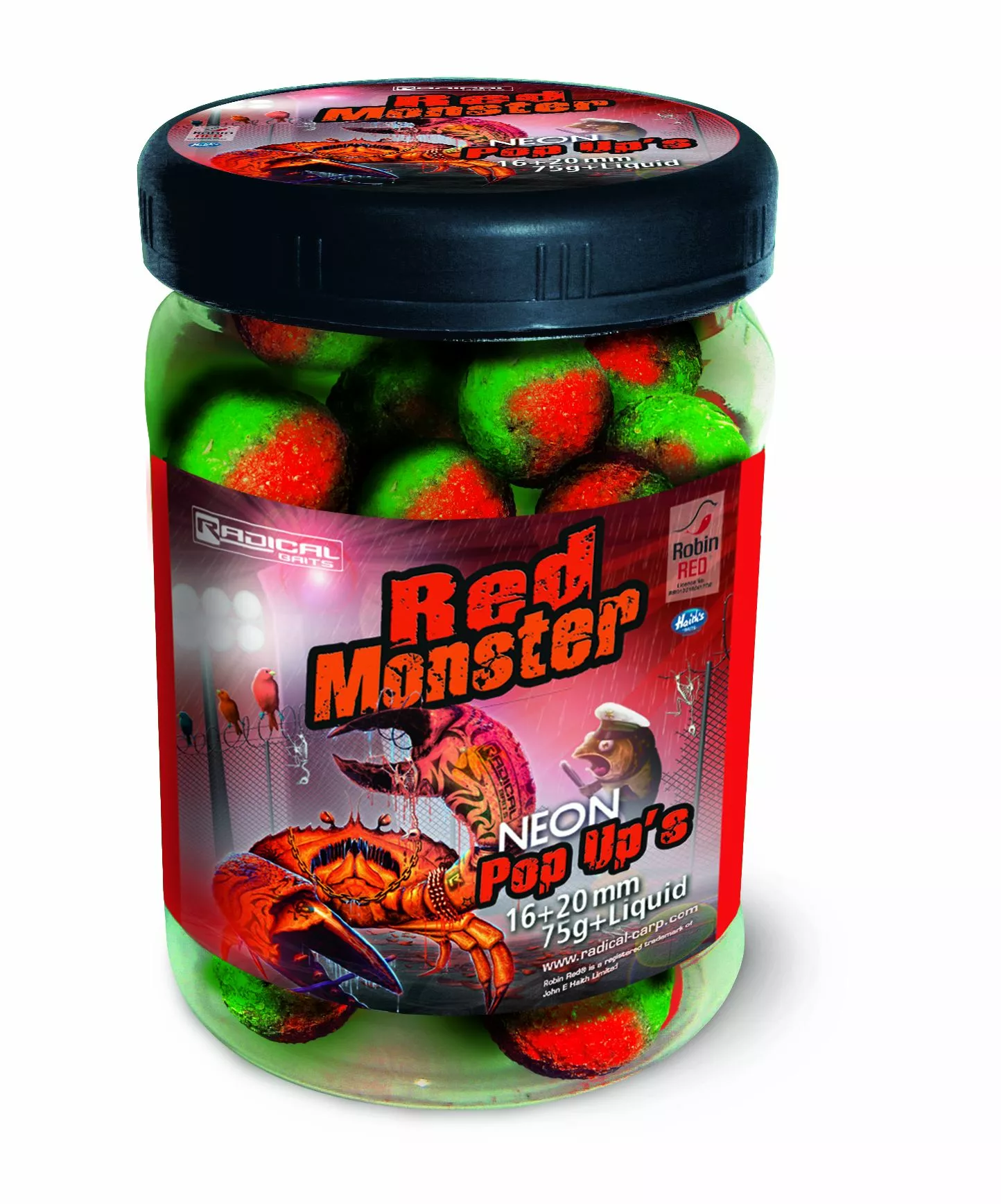 Als u ervoor wilt zorgen dat uw pop-ups opvallen, dan zijn fluorkleuren ideaal. Deze Neon Pop-Up boilie past perfect bij de Red Monster boilies. Kleur: neon groen / rood.