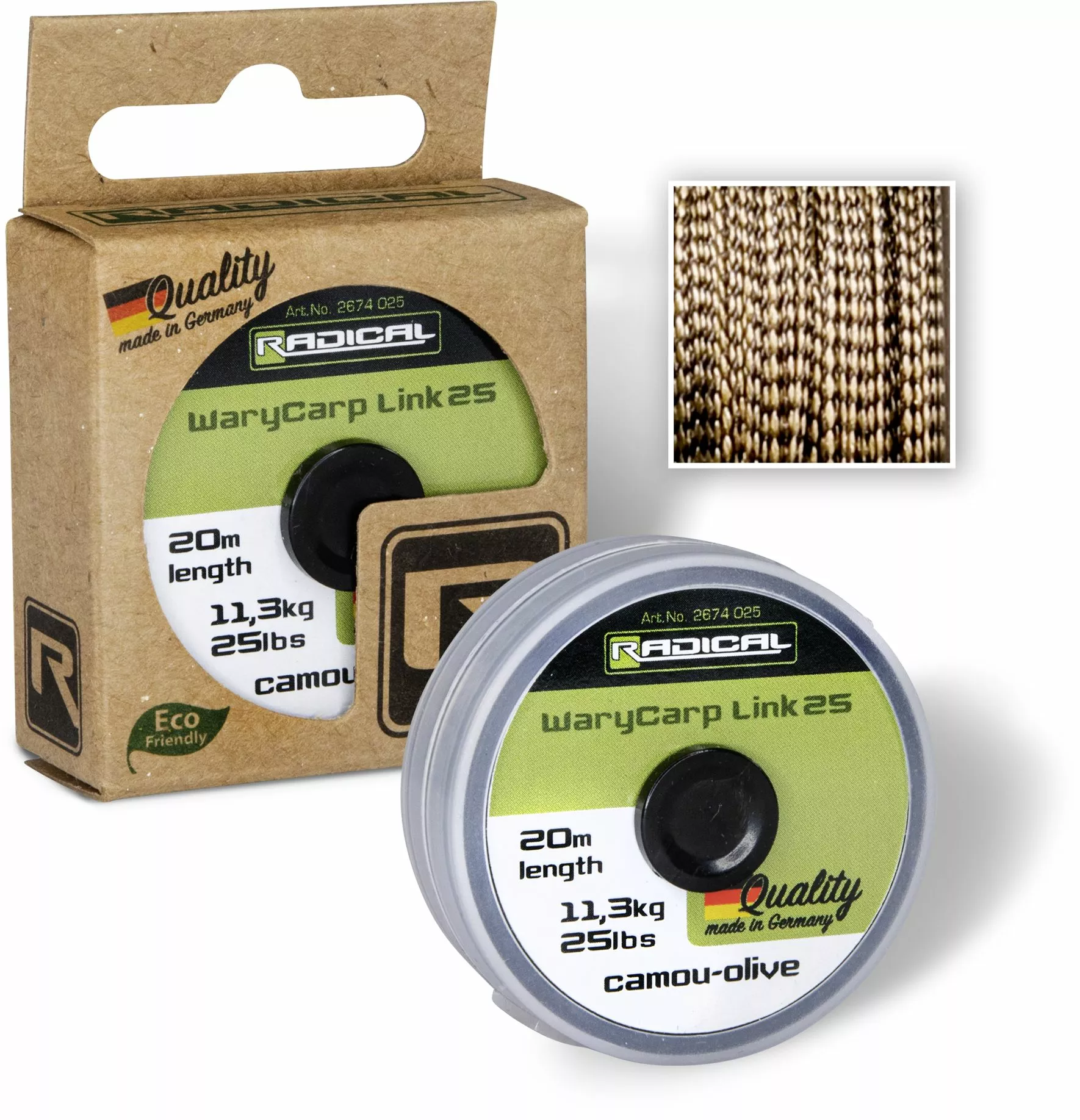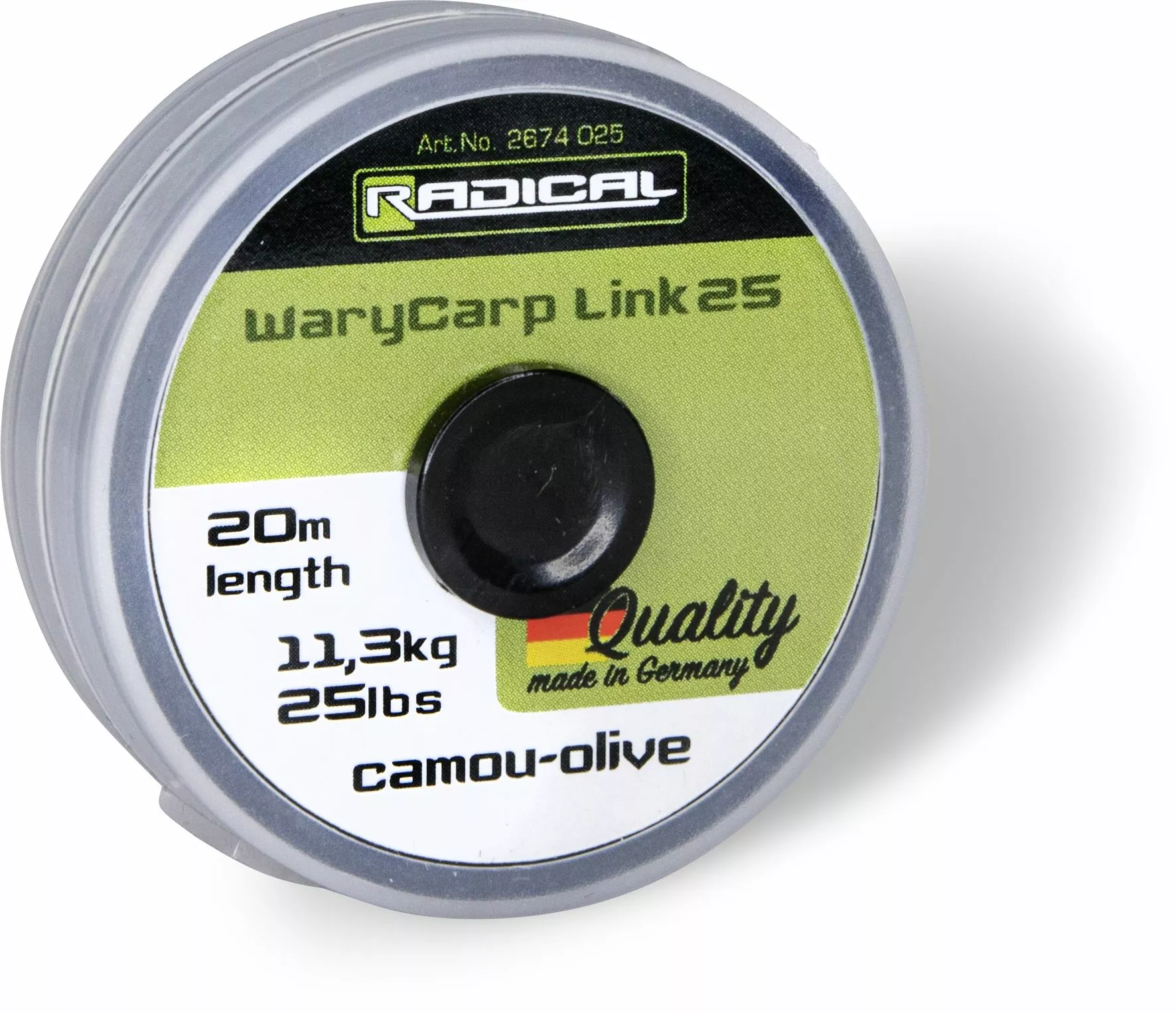 De WaryCarp Link is zinkend leadermateriaal vervaardigd van gevlochten lijn. De perfecte mix van soepelheid en stijfheid is hierbij bereikt en dit met een zeer kleine diameter. De kleuren vallen perfect weg tegen het landschap onderwater en maken dus een zeer onopvallende presentatie mogelijk. Geproduceerd in Duitsland!