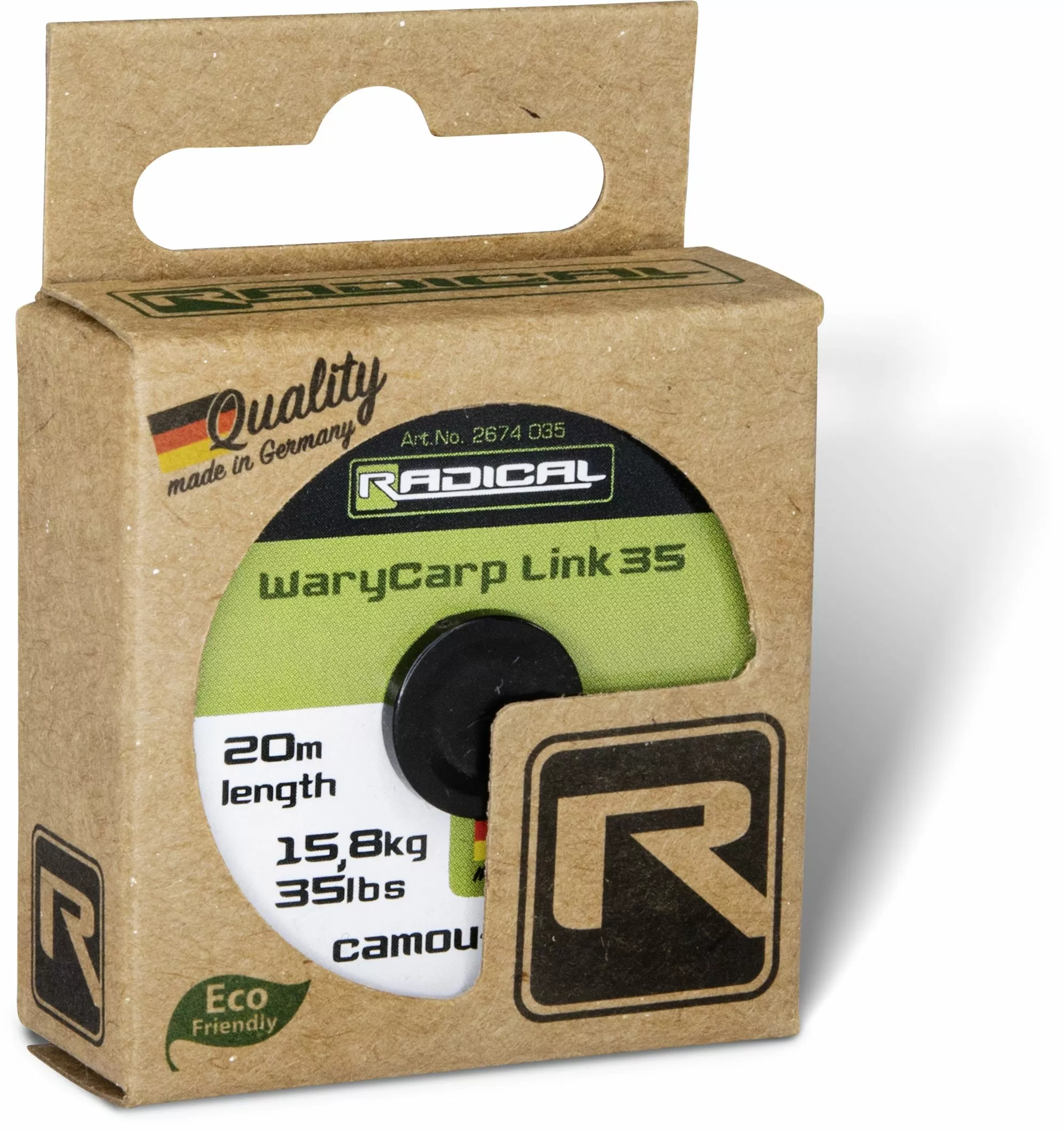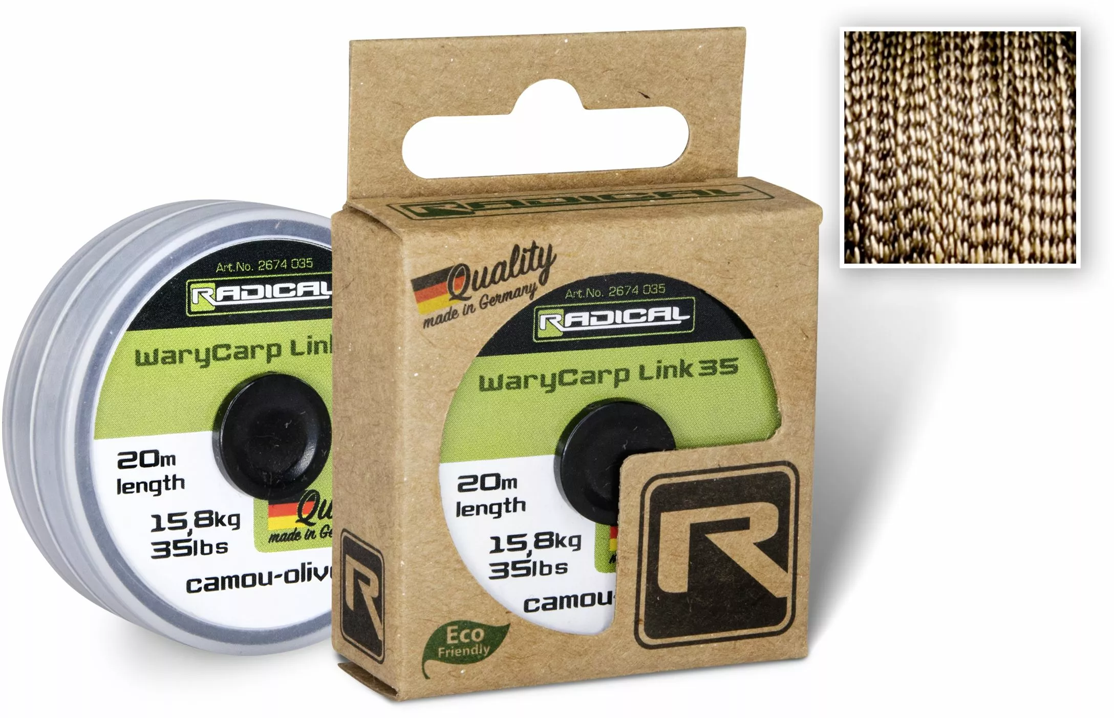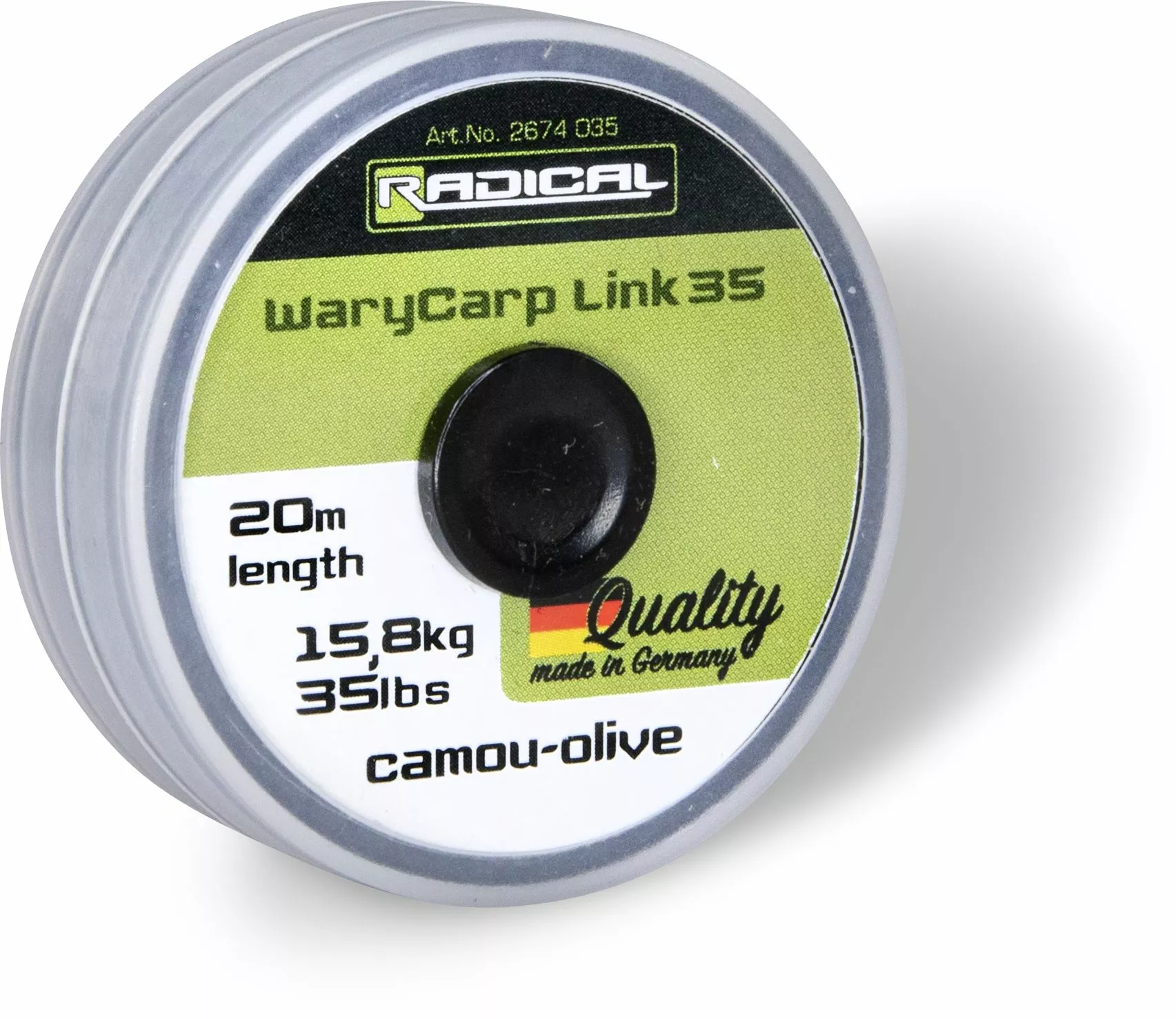 De WaryCarp Link is zinkend leadermateriaal vervaardigd van gevlochten lijn. De perfecte mix van soepelheid en stijfheid is hierbij bereikt en dit met een zeer kleine diameter. De kleuren vallen perfect weg tegen het landschap onderwater en maken dus een zeer onopvallende presentatie mogelijk. Geproduceerd in Duitsland!