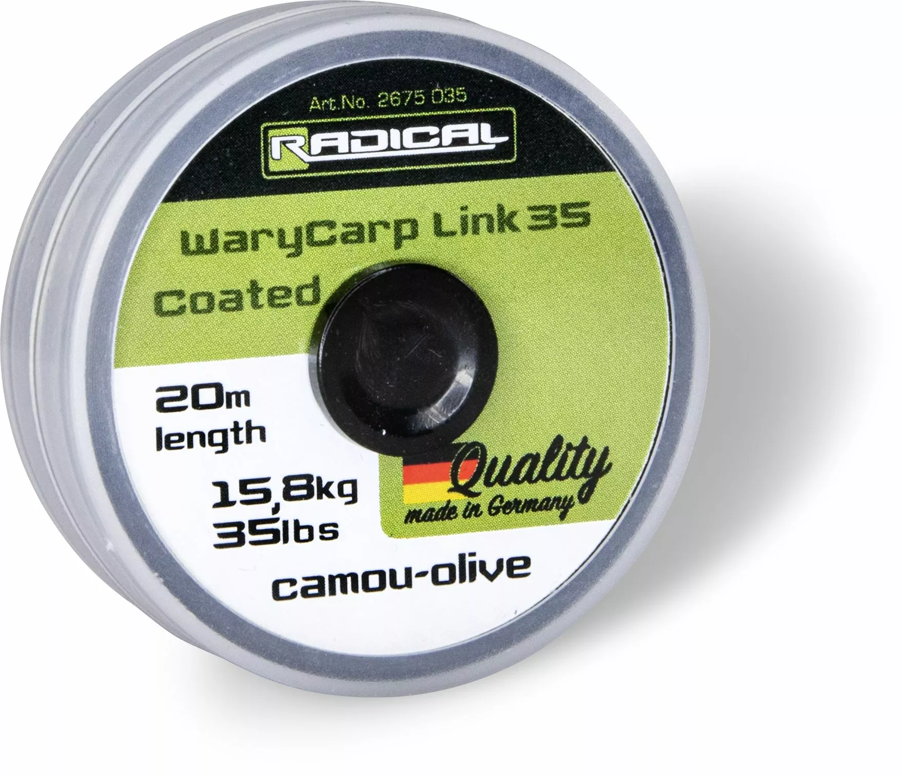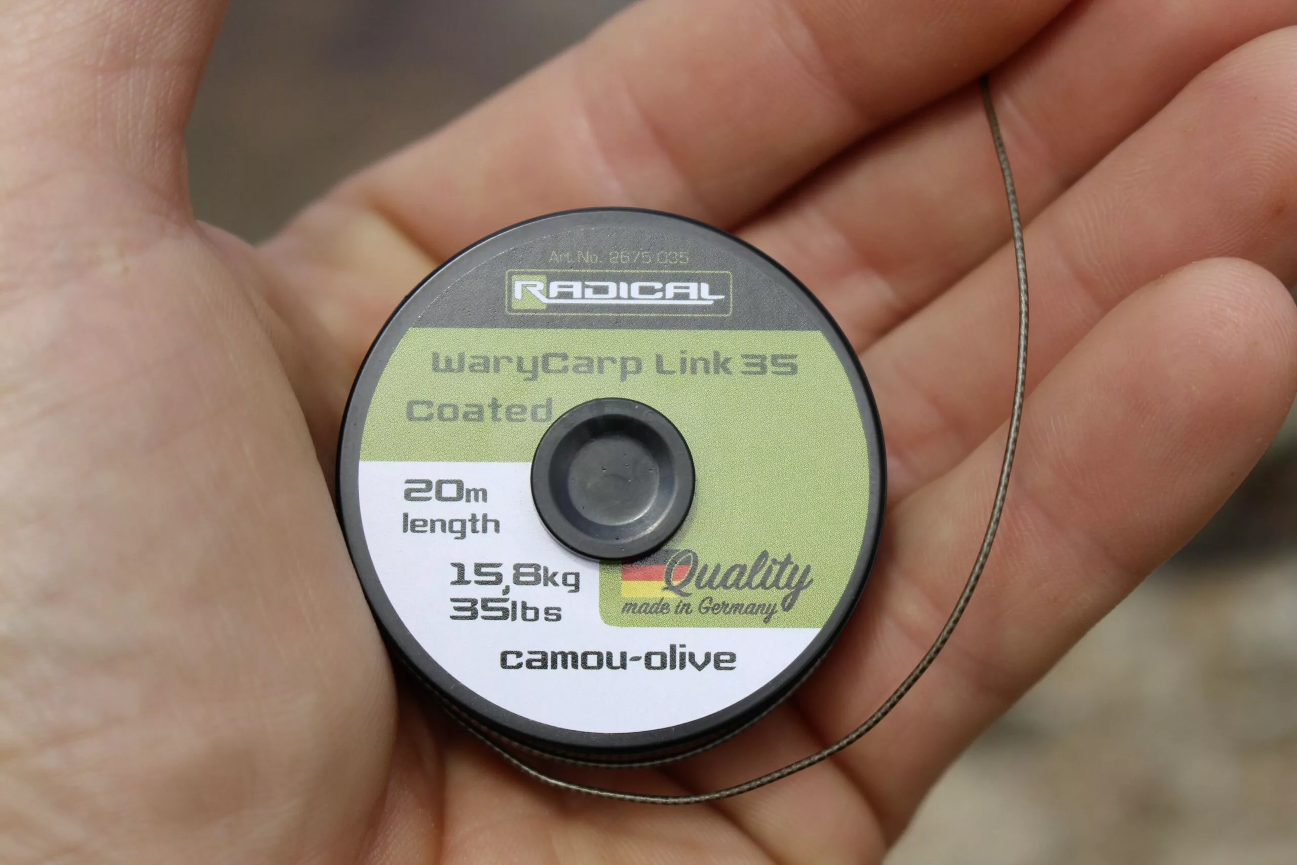 De WaryCarp Link is zinkend leadermateriaal vervaardigd van gevlochten lijn. De perfecte mix van soepelheid en stijfheid is hierbij bereikt en dit met een zeer kleine diameter. Ondanks de stijfheid kan de coating gemakkelijk verwijderd worden met je vingers, zonder dat er kans is op beschadigingen van het materiaal. Het oppervlak van de coating gaat ongewilde reflecties tegen. De semi-transparante kleuren garanderen een onopvallende presentatie. Geproduceerd in Duitsland!