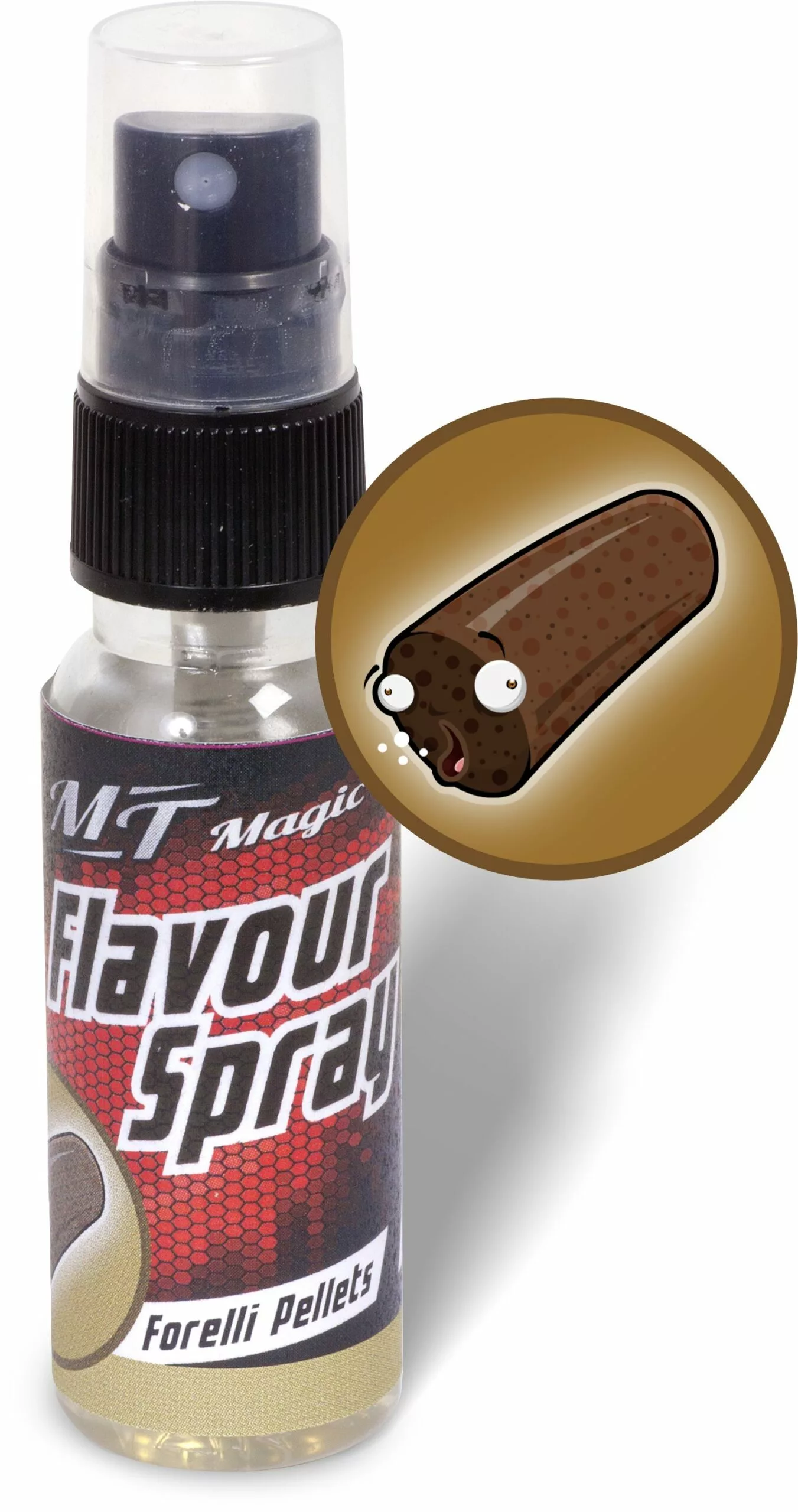 De beste smaakrichtingen voor het vissen op forelvijvers. Met de Magic Trout Flavour Sprays kun je de gebruikelijke aassoorten ‘pimpen’ en het aantal aanbeten duidelijk laten toenemen – simpelweg sprayen en vangen! Elk flesje heeft een inhoud van 30 ml, daarmee vinden ze een plekje in elke tas en liggen ze steeds voor het grijpen.