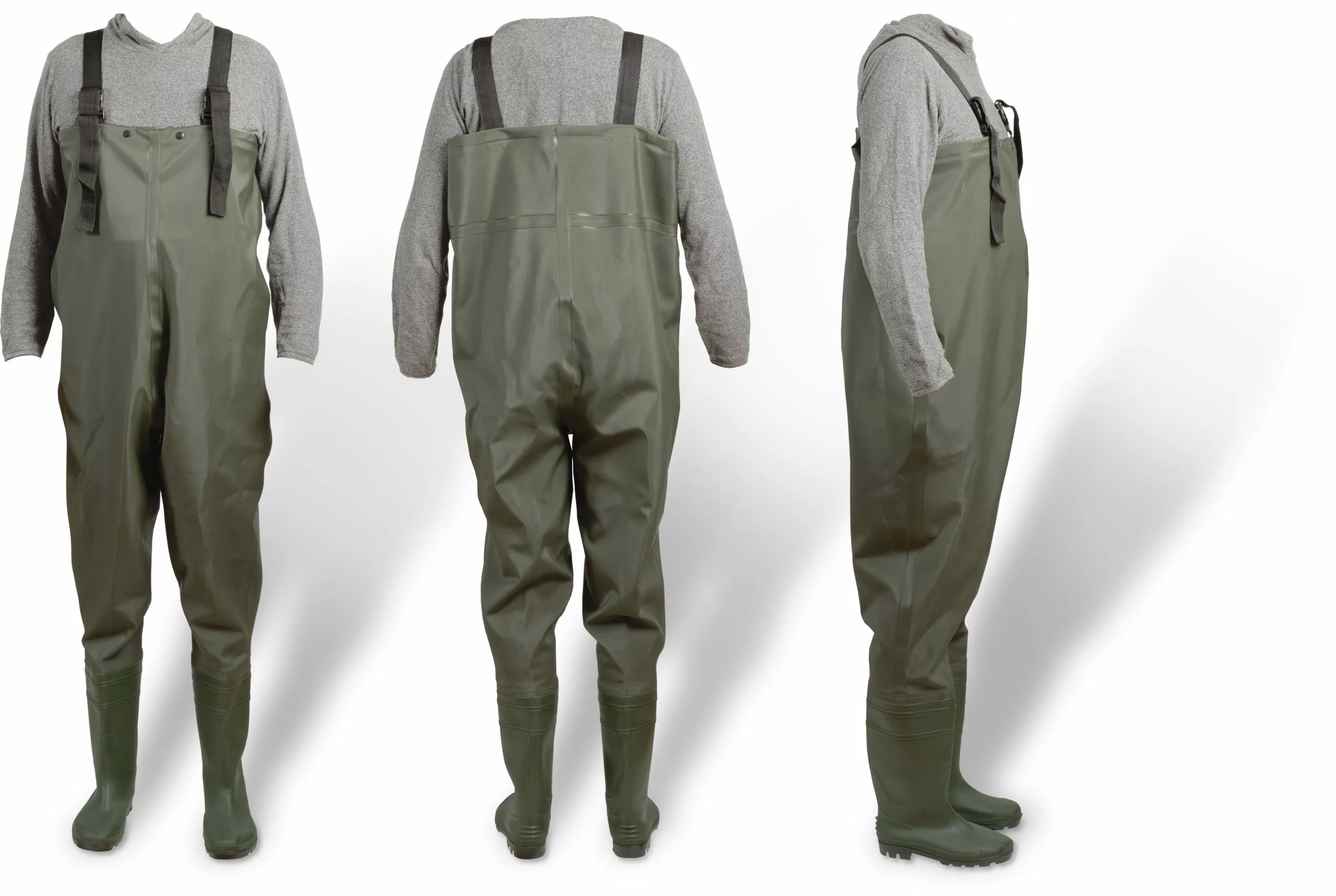 Hoogwaardig PVC waadpak, alle naden zijn perfect afgewerkt, gegarandeerd absoluut waterdicht.